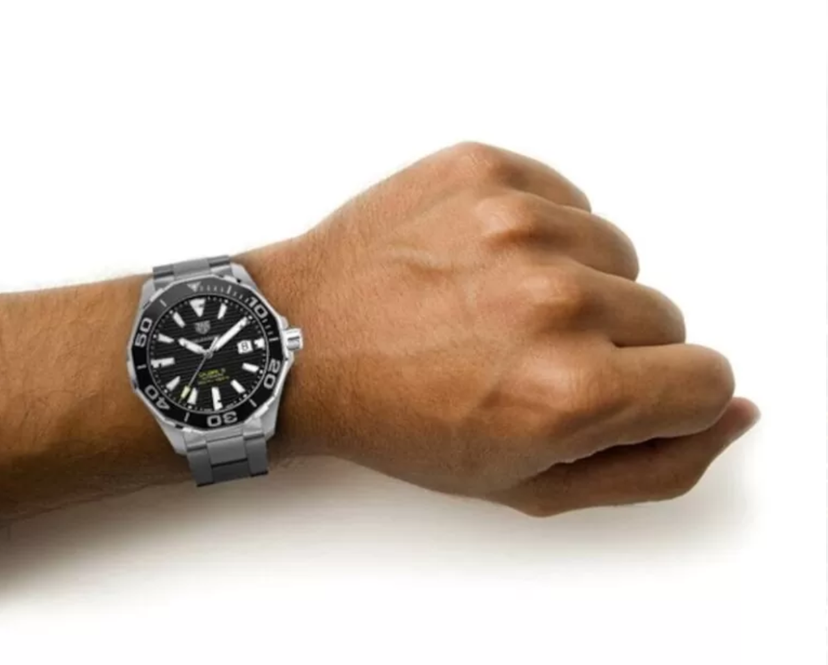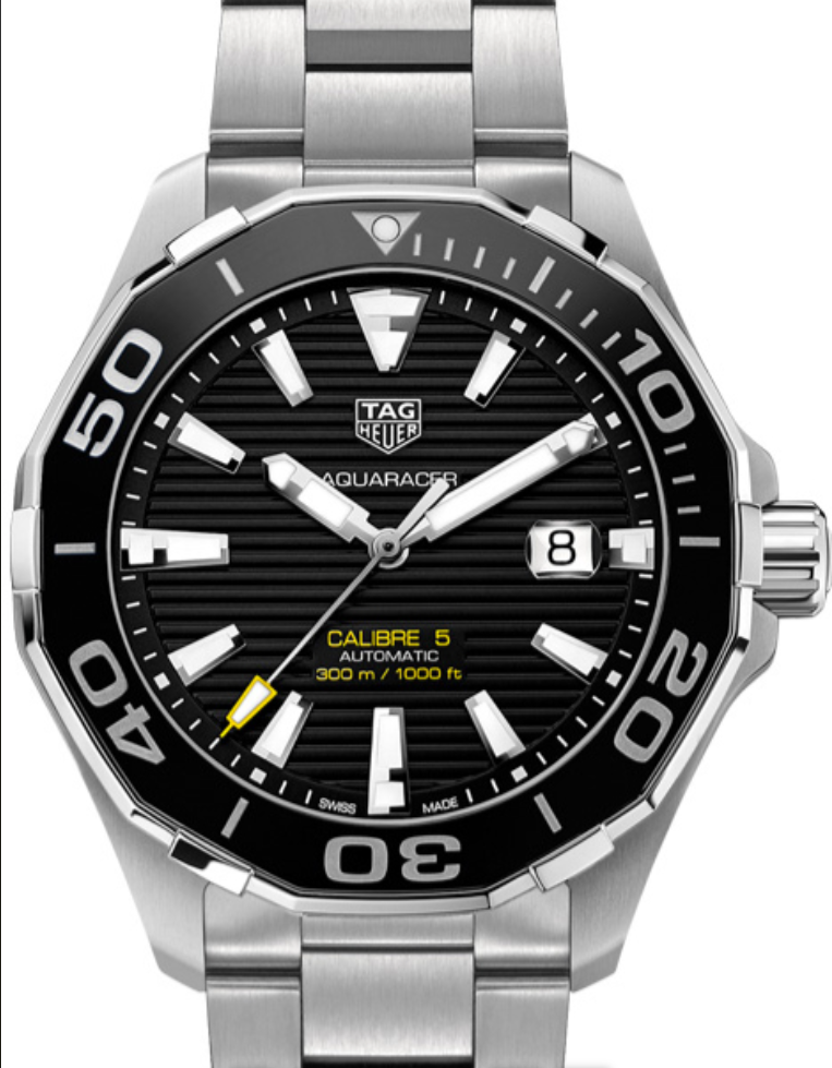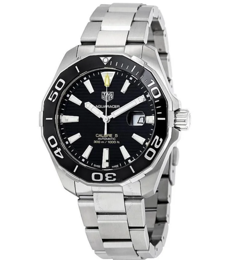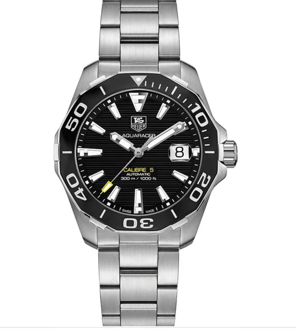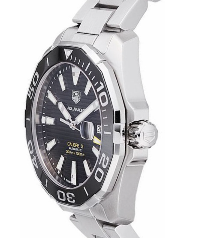 Built for diving, the new TAG Heuer Aquaracer with a black sunray brushed dial is the ultimate everyday watch. Updated with a new case and bracelet and powered by the automatic Calibre 5, the Aquaracer raises the bar for performance.