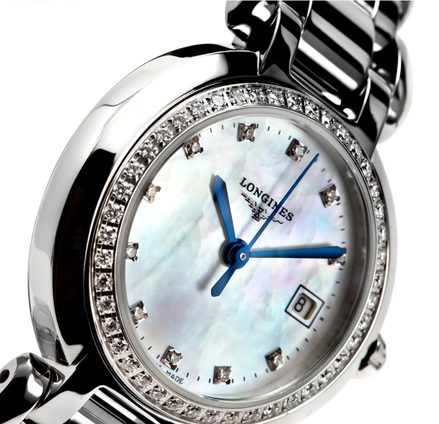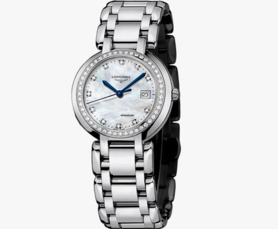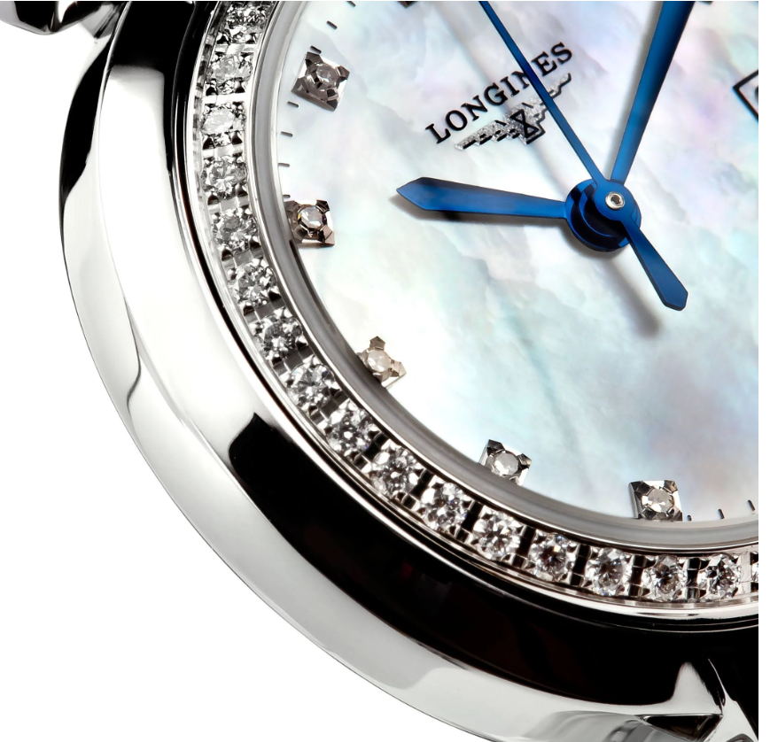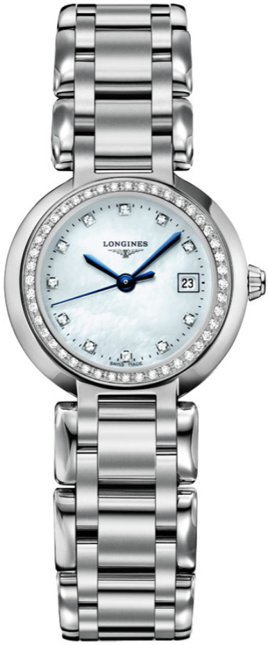 Longines Primaluna 26.5 mm Diamond Bezel Mother of Pearl Diamond Dial SS Bracelet L8.110.0.87.6