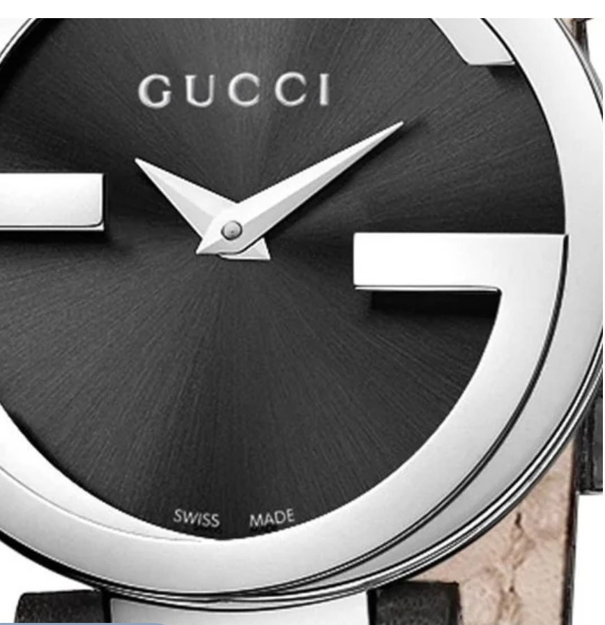 Gucci Interlocking-G Black Dial Leather Strap Women's Swiss Watch YA133501