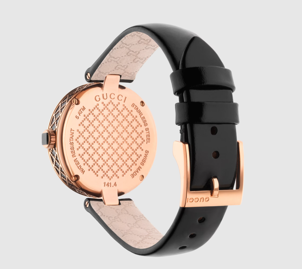 Gucci Diamantissima Black & Rose Gold Womens Swiss Watch 27 mm YA141501